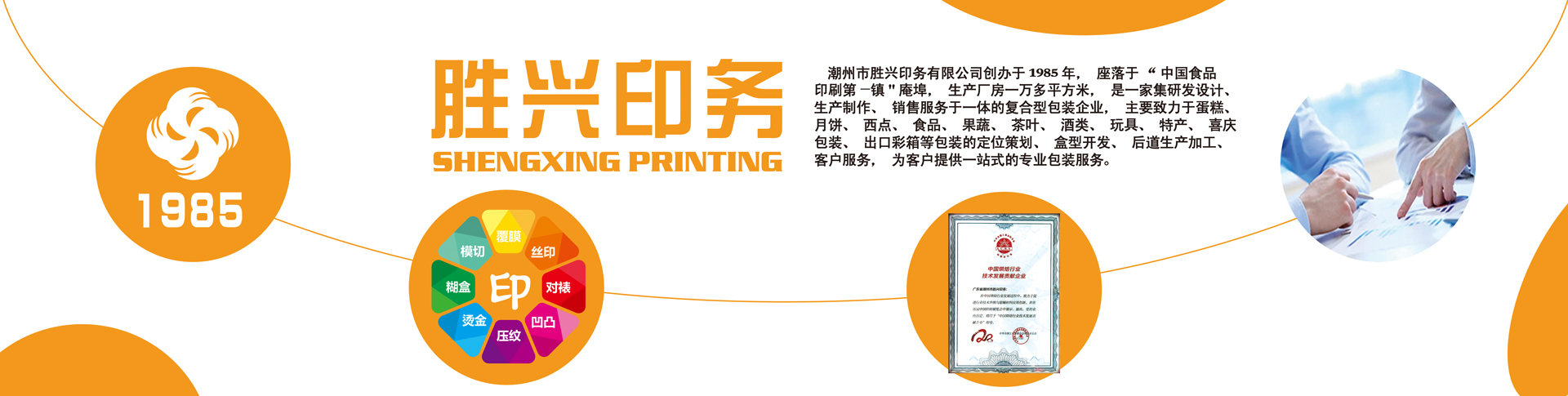 潮州市勝興印務有限公司創(chuàng)辦于1985年,座落于“中國食品印刷第—鎮(zhèn)”庵埠鎮(zhèn),多年來一直從事包裝印刷行業(yè),擁有德國印刷機多臺及配套,專業(yè)生產(chǎn)蛋糕包裝、月餅包裝、年畫及各種吉祥物品。勝興的成功,有賴于才干卓越、盡心盡力的員工。本廠注重技術人才隊伍的建設,擁有技術性強的各類專業(yè)印刷人員。成熟的生產(chǎn)技術及優(yōu)質(zhì)的服務使我們得到了良好的聲譽和信任。